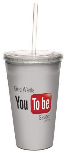 Tree-Free Greetings cc34366 YouTube-You to be Saved: John 3:16 Artful Traveler Double-Walled Cool Cup with Reusable Straw, 16-Ounce
