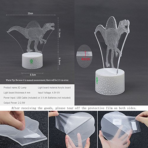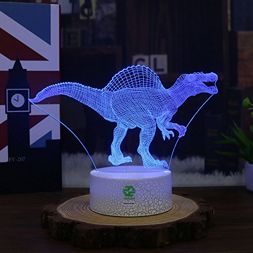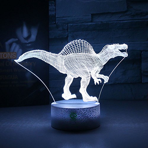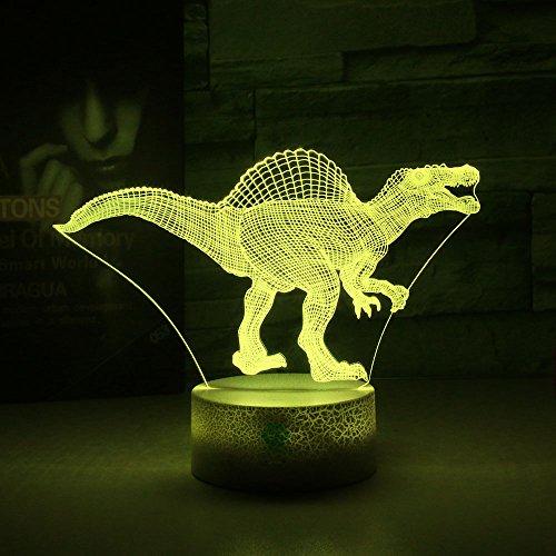 Night Lights for Kids Dinosaur Illusion Birthday Gifts Optical Desk Lamp Table Touch Walking Animal Light Party Western Children Room Decor Bedroom Nursery 7 color Changing USB Crackle Spinosaurus