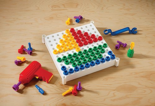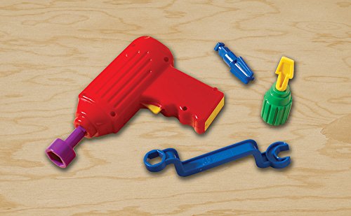 - Feature : Frustration Free Packaging: this version comes in a brown corrugate box. Easy to recycle and great for the environment! / Builds coordination, imagination, creative thinking and fine motor skills / Features 20 Activity Cards with design ideas children can follow for an additional color-matching challenge / Includes plastic bolts, a reversible power drill, a screwdriver, 3 drill bits,a combination wrench and activity board / Requires 3 AA batteries (not included)