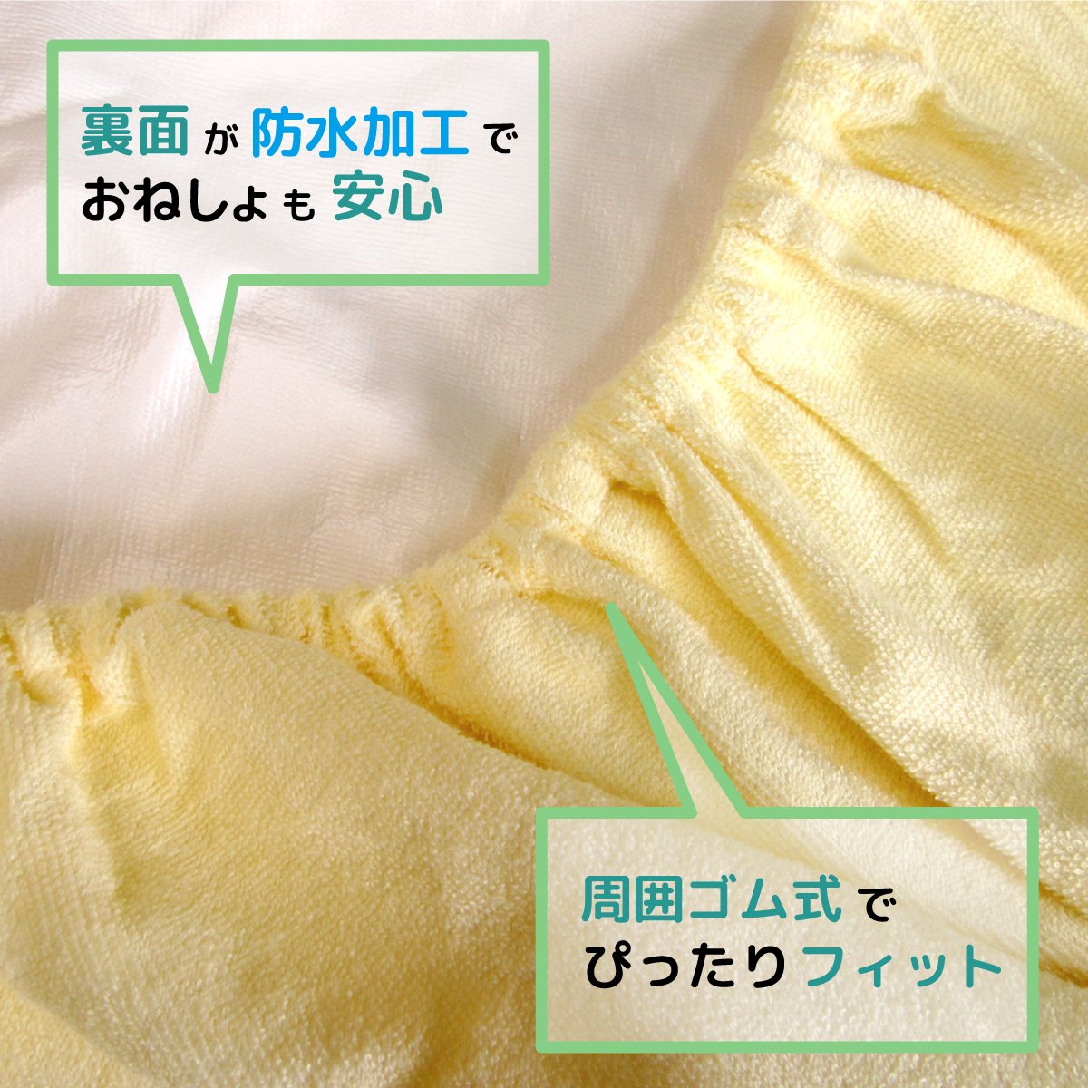[Composition] Front side: 100% cotton (ground yarn: 100% polyester) · Back side: polyurethane laminate processing (waterproof processing)