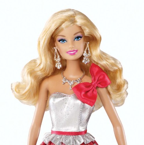 Barbie Holiday Doll: Celebrate the holidays with Barbie! Dressed in a beautiful, holiday-inspired dress, she is always ready to commemorate the season. This year, Barbie is featured in a gorgeous silver and red dress with sparkle accents and bow. The perfect addition to any Barbie collection.Feature