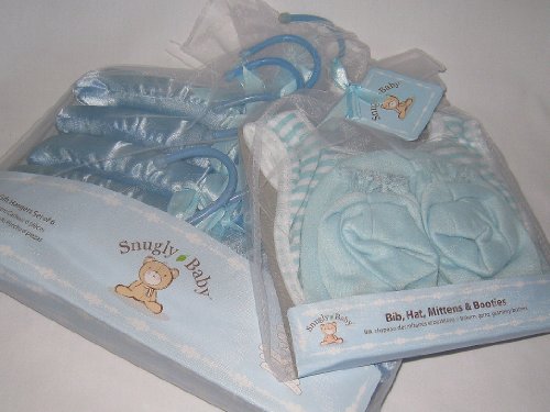 SNUGLY BABY INFANT BOY BLUE GIFT SET 6 SATIN HANGERS+BIB, HAT, MITTENS & BOOTIES