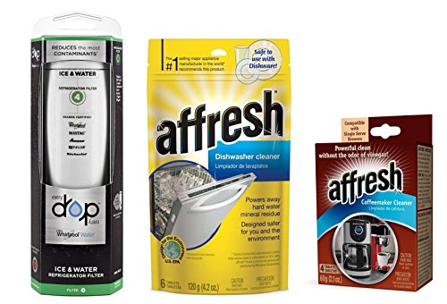 [Product Information]- Buindle Includes: EveryDrop Filter 4 (EDR4RXD1), Affresh Dishwasher Cleaner 6 Tablets (W10282479), and Affresh Coffeemaker Cleaner (W10511280)