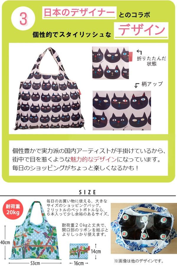 | 使わないときは折りたたんで収納できる、携帯に便利なショッピングエコバッグ。たっぷり容量で耐荷重はなんと20kg!!マチ付きにもでき、安定感も◎。日本のアーティストとコラボした個性豊かなデザインのDESIGNERS JAPANシリーズです♪ |