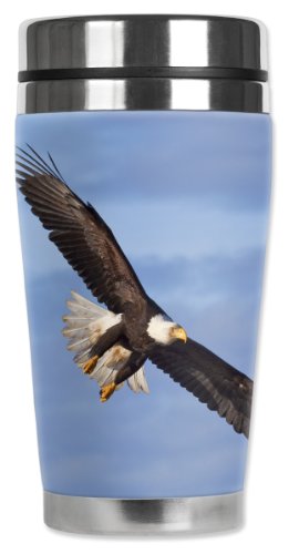 Mugzie Soaring Eagle Travel Mug with Insulated Wetsuit Cover, 16 oz, Black