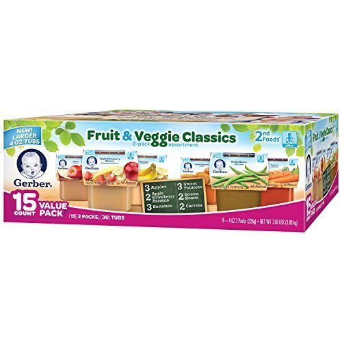 -. Feature : 15 - 2 packs = Total 30 tubs, New larger 4 oz tubs / No artificial flavors or colors. Age-approP.R.Iate texture and nutrition. / Made with natural vegetable / Ingredients carefully selected to meet Gerber's high quality standards / Unsweetened, unsalted, no added starch, artificial flavors or colors