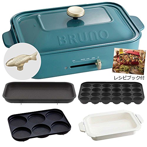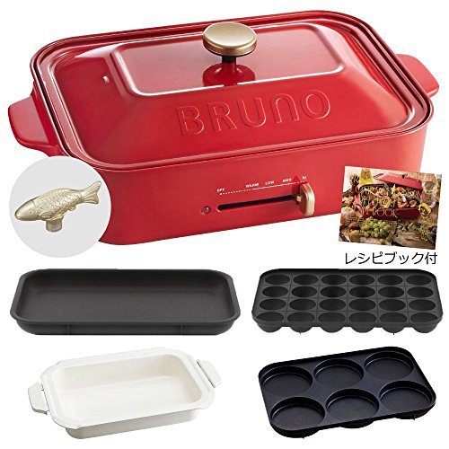 BRUNO 콤팩트 핫 플레이트 + 세라믹 코트과 + 멀티 플레이트 + 레시피(요리처리법) 북 + 데코레이션 노브 피쉬 5점 세트