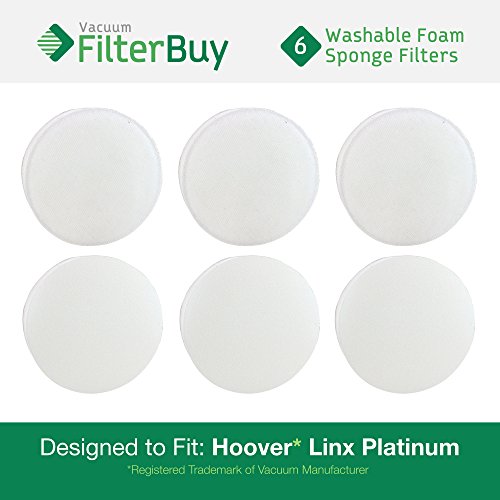 6 - Hoover Linx Washable & Reusable Foam Sponge Filters. Designed by FilterBuy to Replace Hoover Platinum Linx #'s 902185003, 001331007, 562161003, & 410044001.
