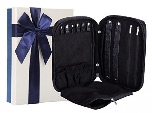 -. Feature : Size: 9.44''L x 6.5''W, small convenient portable size for easy carrying, saving space for your carry-on case or lage. / Exterior nylon material, making this jewelry case has a generous and elegant appearance. The interior suede material which is nice and smooth to the touch, offer the best protection to all your jewelries. / 6 snaps for hanging the necklaces, keeping them from tangling. A thoughtful separated bottom pocket to protect the pendants from damage, keep them from abrasion with each other. / This jewelry features in two zipper pockets and one removable pouch, help to store the large pieces of jewelry. / Best Christmas gift for your family or friends. This jewelry case wrap with an adorable gift box, perfect gift idea.