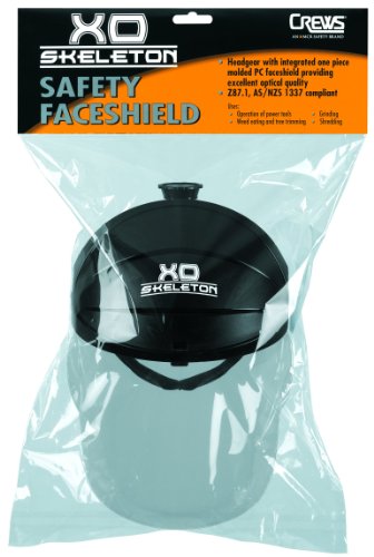 MCR Safety 104 XO Skeleton Nylon Ratchet Headgear with Clear Faceshield, Black Matte, 1-Pair
