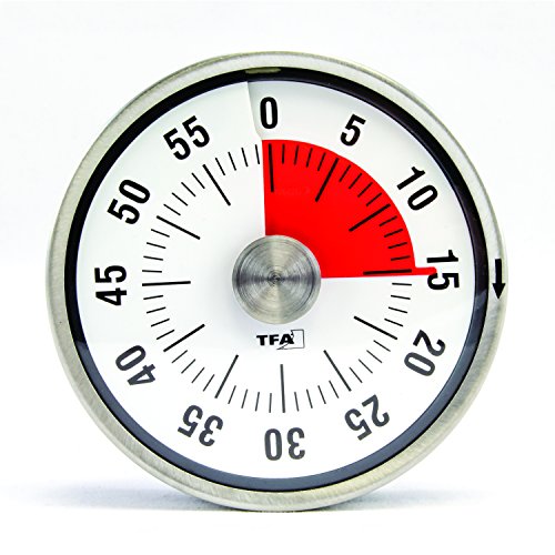 Studio : TFA Dostmann Publisher : TFA Dostmann Binding : Misc. Product Description Puck design kitchen timer features stainless steel case with turn dial starter. Magnet back to attach to refrigerator or oven. Red indicator of remaining countdown time (up to 60 minutes.). 0