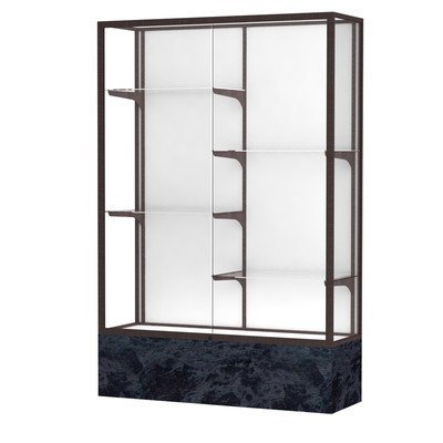 Studio : Waddell Publisher : Waddell Product Description 572WB-BZ-SS Frame Color: Dark Bronze, Base Color: Silver Swirl, Case Backing: White Laminate Features: -Monarch Series collection. -Cases have an uncommon look for a great way to house your extraordinary accomplishments. -Anodized aluminum framing secures the sliding tempered glass doors and built-in locks. -Comes with interior lighting for added emphasis. -Made in the USA. Product Type: -Trophy display case. Lighting Available: -Yes. Design: -Floor standing. Display Material: -Glass. Country of Manufacture: -United States. Frame Material: -Metal. Adjustable Shelves: -Yes. -Lights not included. Dimensions: Overall Height - Top to Bottom: -72". Overall Width - Side to Side: -48". Overall Depth - Front to Back: -16". Overall Product Weight: -240 lbs. Base/Stand Height - Top to Bottom: -12". 0