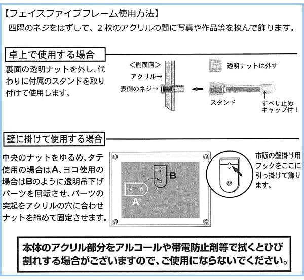 | 純度99%の高純度アクリルを使用し、高度な技術による美しいカット面が特徴のフォトフレームです。透明度が高いので、時間の経過による黄変がほとんどありません。シンプルなデザインかつ、壁にかけても置いてもご使用いただけるので、場所を選びません。お部屋の色々な場所に大切な絵や賞状、写真、ポスターなどを飾っていただくことができます。 |