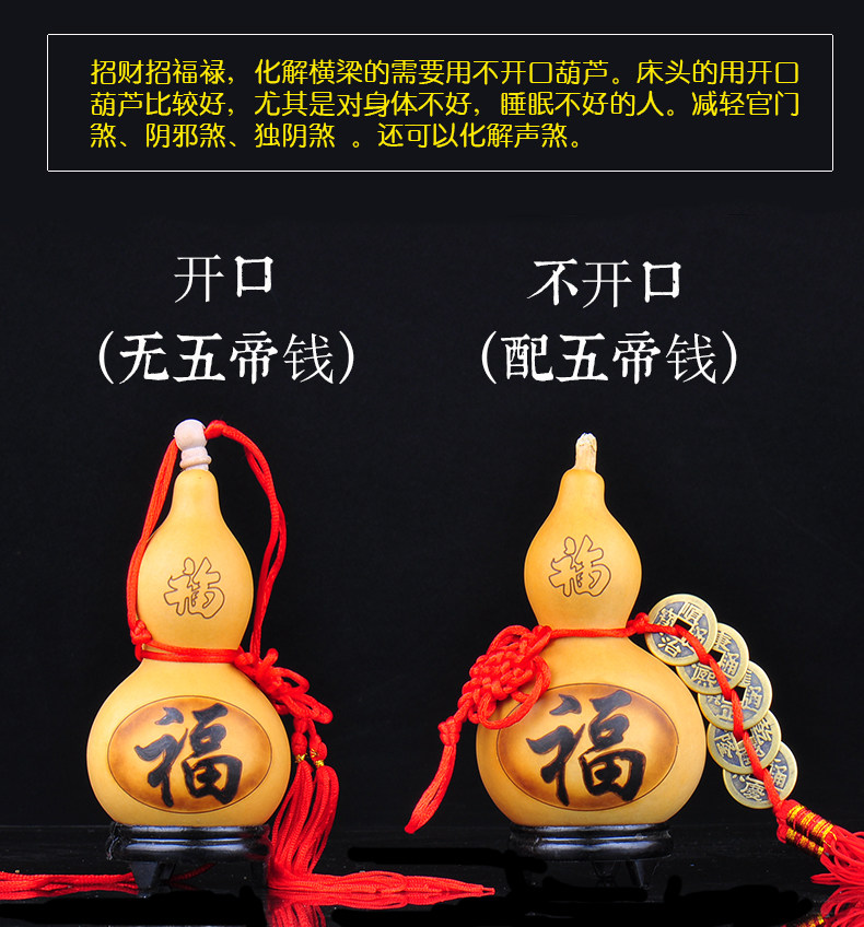 Defuse top beam pressure gourd, it can not open. As beam home on the ceiling facing the bed, dresser or study seats, etc., but the owner has time to rest or work in the area, it will easily lead to the top beam pressure, so that the body suffers from pain. At this point you can hang on the beam or between two beams without opening a gourd can resolve the top beam pressure drawbacks.