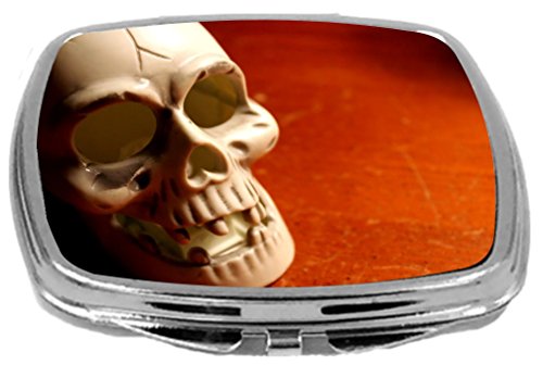 Rikki Knight Compact Mirror, Smiling Skull on Orange Background, 3 Ounce