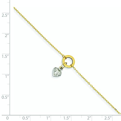 Roy Rose Jewelry 14K Yellow Gold Two-tone Circle/Diamond Cut Puff Heart w/ 1'' extension Anklet ~ Length 9'' inches