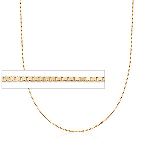 Ross-Simons is the authority on luxury classics. Reach for a fashion favorite each time you wear this 18kt yellow gold over sterling 1mm box chain. It looks great on its own or is ideal for showcasing your favorite pendant. Chain adjusts from 24" to choker length by sliding the adjuster on the clasp. Made in Italy. Lobster clasp, 18kt yellow gold over sterling silver chain. Each Ross-Simons item arrives in a fine jewelry presentation box. Shop Ross-Simons jewelry risk-free as all items include a 30-day, 100% money-back guarantee.Feature
