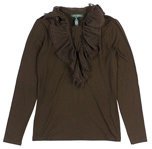 -. Title : Lauren Women's Long-Sleeve Ruffled Henley Top