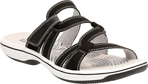 Studio : Clarks Publisher : Clarks Binding : Shoes Product Description A casual sandal with clarks collection comfort. comfy synthetic straps with topstitching have a hook-and-loop closure for an adjustable fit. synthetic linings, a lightweight, supersoft eva foam-padded footbed and flexible tpr outsole make this women's sandal fun to wear all day long. 0