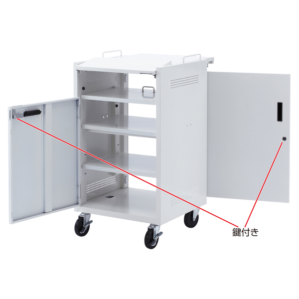 ●簡単操作ですぐに使えるプロジェクター台。鍵を掛けて収納も可能。