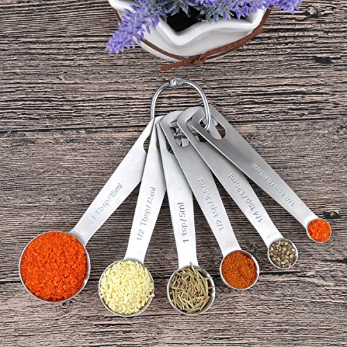 MAKING A PERFECT UTENSILS WILL NEVER BE A DOWNFALL: Unlike cheap plastic measuring spoons,The weight gives the spoons the sense of quality,food grade stainless steel healthier than plastic for food preparation.We wanted a set of measuring spoons that can last decades,and the deep round shape is great for measuring liquids without spills, unlike an obnoxiously wide and shallow set from the grocery store.