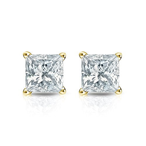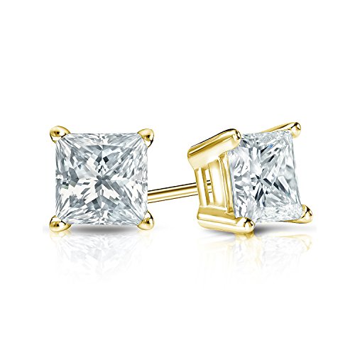 Women simulated diamond cz earrring in gold. These brilliantly cut CZ stud earrings are secured with Screw-back. The simulated diamonds are professionally set into 14k Yellow Gold with 4 Prong Basket setting