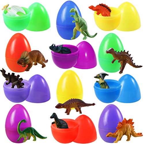iBaseToy Easter Eggs with Toy Dinosaurs Inside - 3.14 Inches Tall - Pack of 12 With 12 Different Dinosaurs