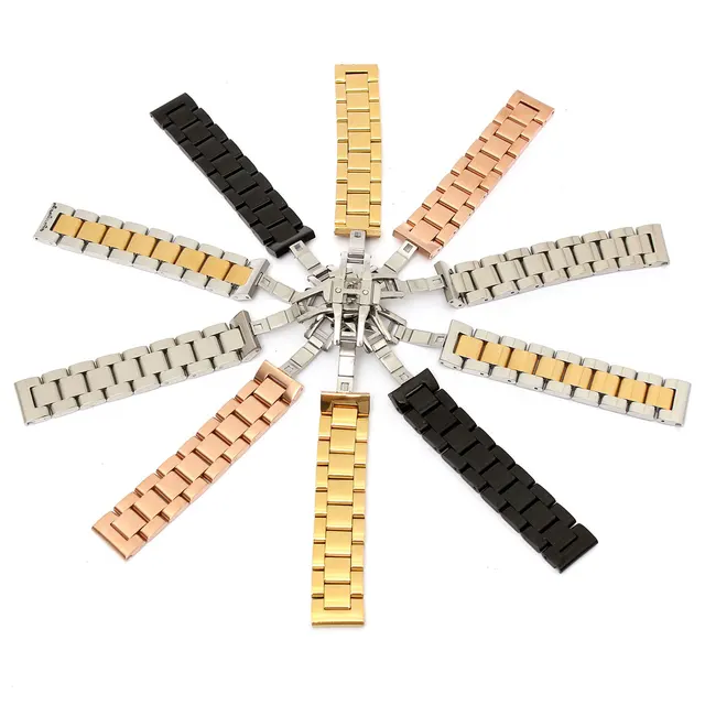 | [해외]1 개 18 미리메터 스테인레스 스틸 시계 팔찌 스트랩 푸시 버튼 스트레이트 엔드 골드 실버 블랙 로즈 골드 실버 골드 금속 스트랩 |