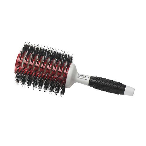 Boar bristle reinforced with single stands of nylon, Tourmaline Coating absorbs heat more quickly and distributes it evenly, Raised rubber grip