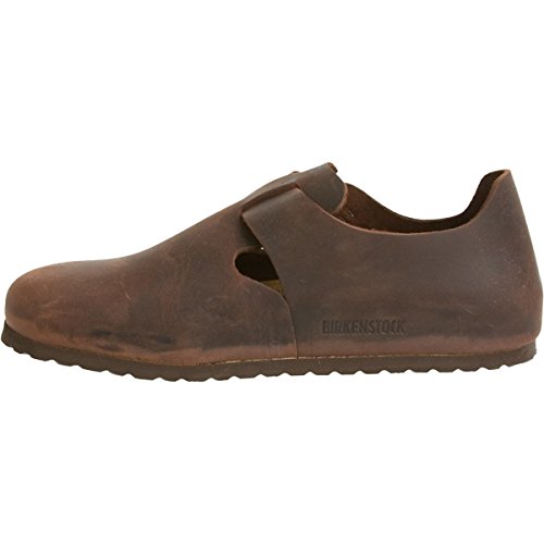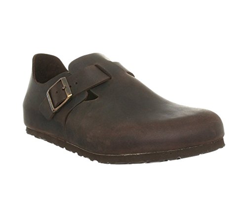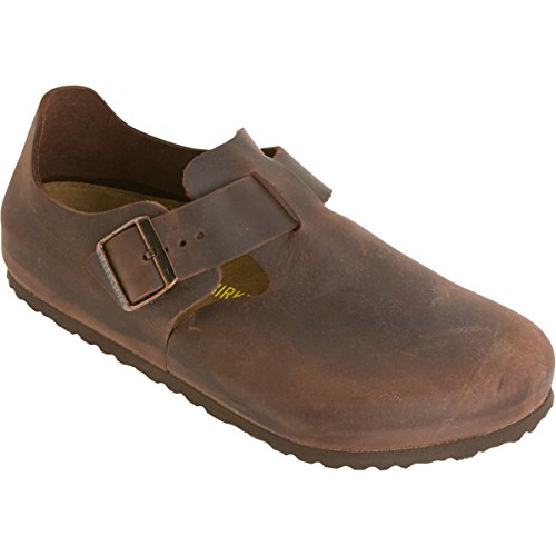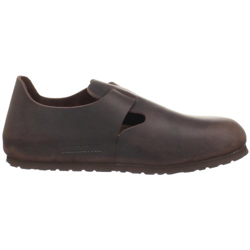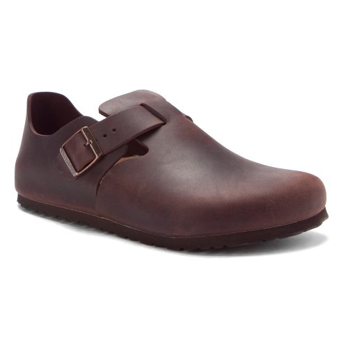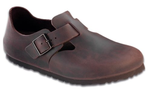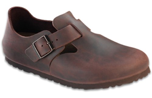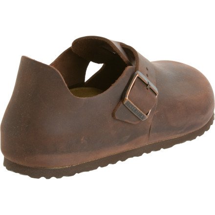 Amazon.com Product Description The London shoe from Birkenstock is so comfortable you won't want to take it off. The style is enhanced by a matte leather upper, an adjustable buckle, cutouts at the vamp, a suede-lined footbed, an absorbent cork midsole, and a textured rubber outsole for sure footing. 0