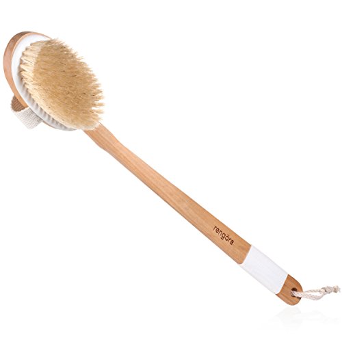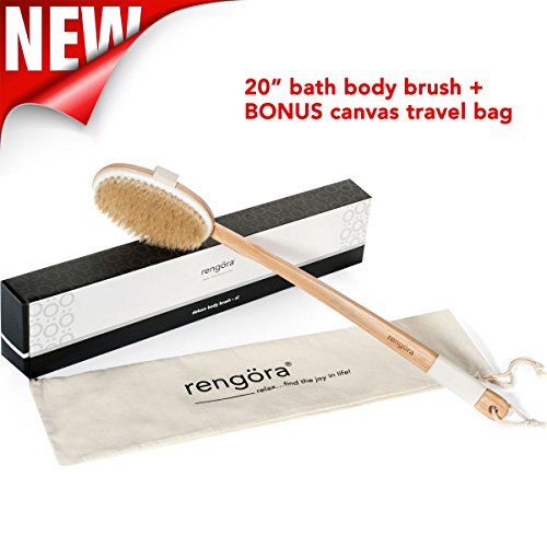 BODY BRUSH - Bath Brush, EXTRA LONG HANDLE 20" Exfoliating, Detachable Natural Bristle Shower Brush. Use This Back Scrubber Wet or Dry for Healthy Skin Care | Makes a Great Gift!