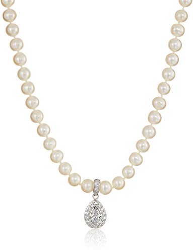 Sterling Silver 6-7mm White with Cubic Zirconia Freshwater Cultured Pearl Strand