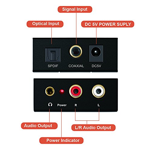Converts SPDIF Optical or Coaxial digital PCM audio input to analog stereo L/R RCA and 3.5mm headphone outputs simultaneously [NOTE: Please set your DVD or player with AUDIO PCM MODEL output; Converter and transfer audio signal only, do not support audio decode]