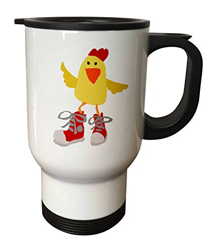 3dRose tm_224763_1 Funny Yellow Chicken with Red High Top Sneakers Travel Mug, 14 oz, White