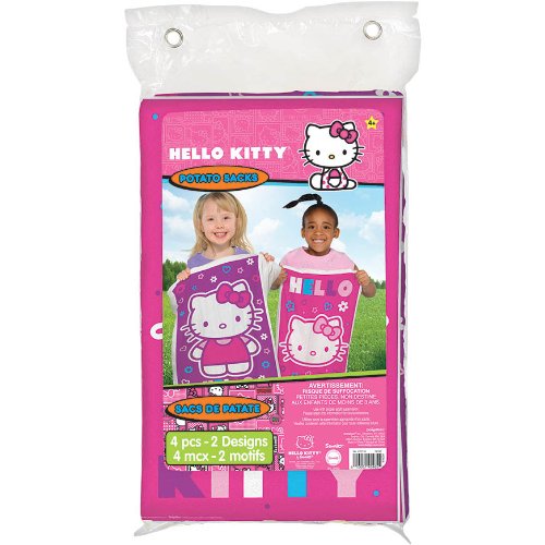 -. Feature : These adorable Hello Kitty sacks come in purple and pink and feature two different designs with Hello Kitty, stars, hearts and flowers / With these durable synthetic fabric sacks, you can get a game of potato sack race going in minutes that's fun for kids of all ages / Package contains 4 Hello Kitty Potato Sack Race Bags / Each measuring 37 7/10" x 23 1/3"