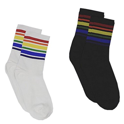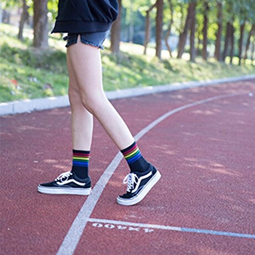 -. Feature : Keep warm in winter, fashion & casual style / One size fits most,warm,stretchy and fashionable. / Fashionable rainbow stripe socks,Soft and breathable material, stretchy, warm and comfortable to wear. / Regular thickness fits all season days - SP.R.Ing, summer, autumn, and winter. / It can be dressed as sport soccer sock, also perfect with any dress, mini skirts,school uniform,pants and more.