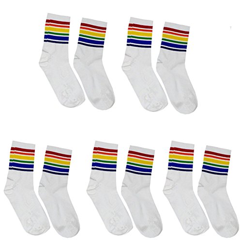 -. Title : Mwfus 5 Pair Women Girls Colorful Rainbow Stripe Cotton High Crew Socks Casual Stockings