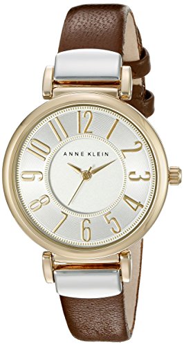 Studio : Anne Klein Publisher : Anne Klein Binding : Watch Product Description Perfect your timing and look with an Anne Klein watch that you can wear every day. The round silvertone dial with goldtone Arabic numerals provides simple elegance that never goes out of style and is easy to read. With a brown leather strap and buckle closure, this women's timepiece fits your wrist comfortably and effortlessly pairs with career or casual wear. 0
