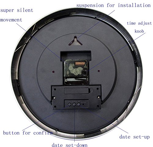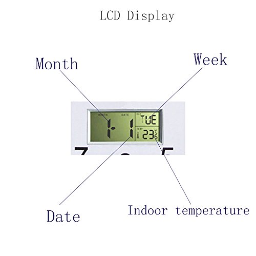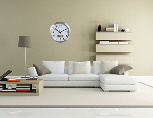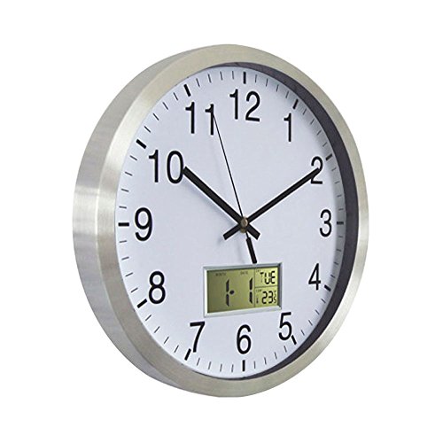 -. Title : YUSOUND Home Decor Non-ticking Metal Calendar Wall Clock with LCD Date, Week, Temperature, 12 Inch(Silver)