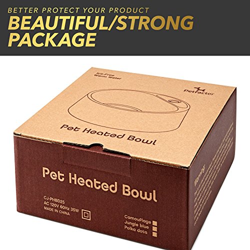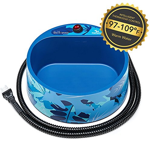 Studio : Petfactors Publisher : Petfactors Binding : Misc. Product Description Keep your pet's or outdoor animal's water bowls from freezing over with this temperature controlled water bowl. With a capacity of a little over two liters and a chew-resistant cord cover for safety, our Pet Thermal Bowl ensures safe, comfortable and accessible drinking water even in the coldest of environments. For added safety, this bowl will automatically shut off if the temperature reaches 113℉ to prevent the risk of fire or overheating. 0