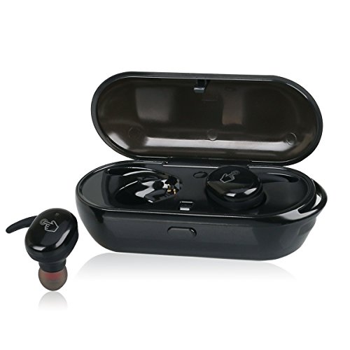 -. Feature : [SmartTouch Version]: No button any more, touch the earphone lightly to control the headset, easily to play/pause music, answer/hand up calls within 10 meters by your bluetooth device, no need to put any pressure and make your ears uncomfortable when you wear the headphone. / [TWS Technology & V4.1+EDR]: Realize the truly cable-free between 2 earbuds, use imported chips to ensure stable signal connections and easy to connect; Built-in A2DP/HFP/HSP/AVRCP audio processing system which eliminate noise and echo, take and make calls clearly with superior microphone quality, ideal for car calling and friends chatting, or listening to music. / [Super Sound Quality & Mono/Stereo Option]: Advance bluetooth chipset provides super clear sound quality and ensures fast speed and stable Bluetooth signal, CVC 6.0 assures well noise cancellation effects; Each earpiece could be used separately, amazing to share them with your friends or your love (with reasonable distance), or use the 2 earbuds to pair to get the stereo sound. / [Charging and Storage Carrying case]: 300mAh charging box supports 5 times, 2-3 hours music(depend on the volume) or 2 hours talking time after 1 time by the charging box; provides up to 12 hours of extra battery life through your day's power. / [Comfortable and Anti-separtion design]: Mini version, lightweight less than a coin, in-ear design fitting close and soft with ear hook, no worry about falling out of your ear; Different sized sweatproof earcaps (S/M/L) create a personalized and secure fit every time; Our products offer 30 money back guarantee no need for any reason.