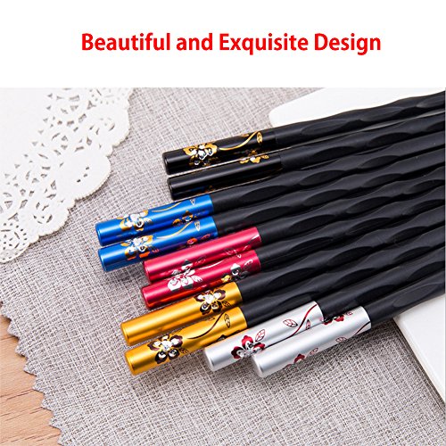 Particular Treatment: Beautiful and exquisite design on the top, made of aluminum alloy, does not rust. The moral of this pattern means: Spring Flowers, it also makes the chopsticks nice and easier to distinguish your own ones. Grinding processing on the bottom prevent food dropping down