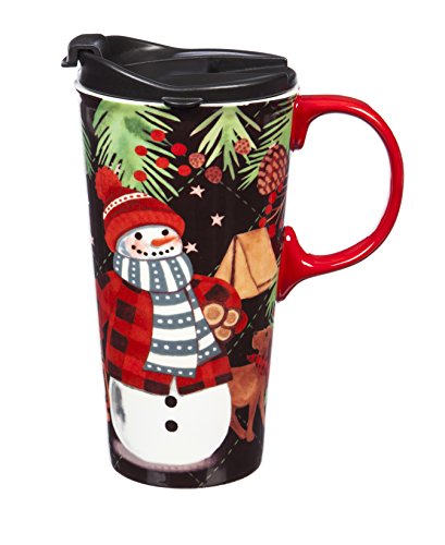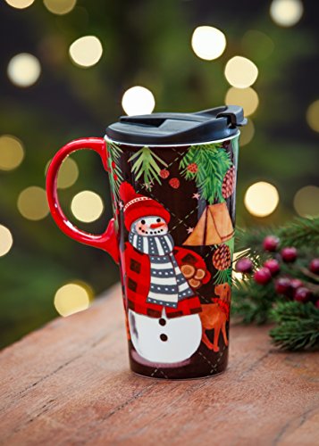 Cypress Home Snowman and Dog Ceramic Travel Coffee Mug, 17 ounces