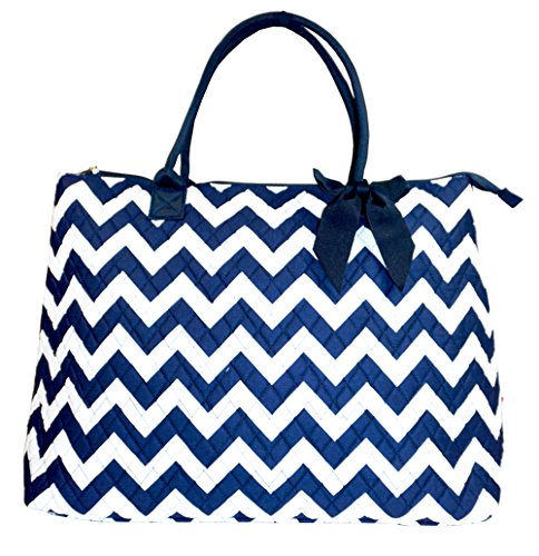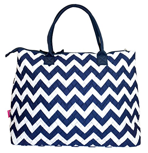 -. Title : Quilted Navy Blue Chevron X-Large Tote Bag - 22-Inch