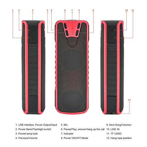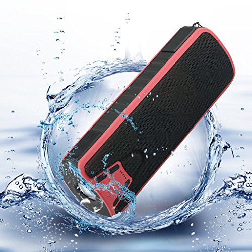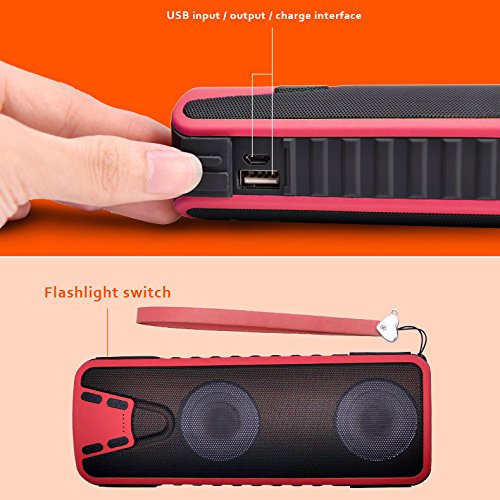 -. Title : Waterproof Bluetooth Speaker, CNUALV Portable Wireless Bluetooth Speaker with 4000mAh Power Bank, LED light, Hands Free Answering Call and TF Card Play . ( Red )