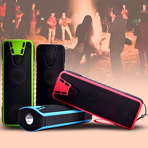 -. Feature : 3 in 1 function: wireless bluetooth speaker + 4000mAh power bank + flashlight. / 2 x 5W -- 10W high-performance driver to deliver enhanced clarity and fidelity sound.Studio quality at home,office,outside activities. / Built-in rechargeable battery with 8 hours uninterrupted play time, with a microphone for convenient handsfree phone call. / Waterproof,splash proof, dust proof,shockproof, suitable for outdoor use while traveling, hiking, cycling, picnic, etc. / Compatible with all Bluetooth-enabled devices. Instantly connect to your smartphone from up to 16 feet away.