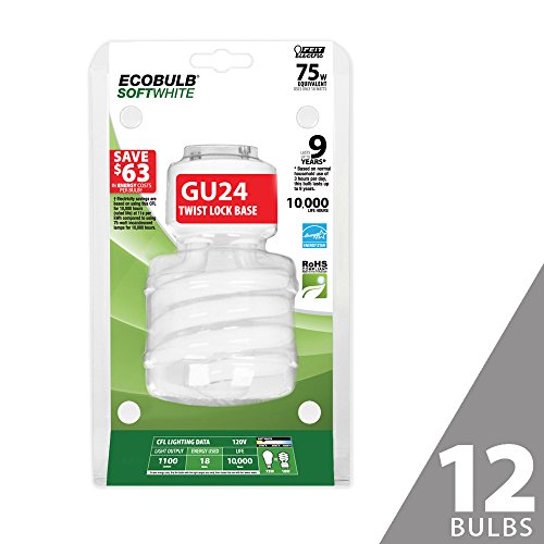 Feit BPESL18TM/GU24 75W Equivalent CFL Twist GU24 Base Bulb (Pack of 12), Soft White