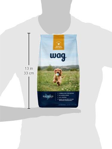 In Wag Dry Dog Food for Puppies, Chicken & Lentil Recipe, real poultry comes first because that's what dogs need to thrive. Protein helps keep your dog at his bounding best. Our recipes are formulated with the help of veterinarians to provide your dog with the optimal blend of protein and fat, without adding any grains. Each serving contains 36% protein to help keep your canine co-pilot active and strong. High quality ingredients are blended in the USA for quality control and each batch is tested to ensure it meets our high standards.Feature