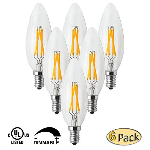 - B10 Dimmable LED Filament Candle E12 Candelabra Base,6 Pack