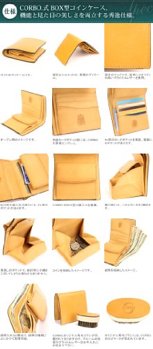 -. Feature : 外寸:縦11cm×横10cm×まち3cm ・重さ:130g / 紙幣入れ:2ヶ所 ・小銭入れ:1ヶ所(CORBO式BOX型コインケース) ・カード入れ:4ヶ所 ・ポケット:3ヶ所 / 表素材:イングリッシュブライドルレザー  ◇手ざわり: 柔 □□□□■ 硬 (※表記は目安です) / 内素材:イタリアンベジタブルタンド  オイルショルダー牛革(バケッタ製法)  ◇手ざわり: 柔 □□□■□ 硬 (※表記は目安です) / MADE IN JAPAN(日本製)